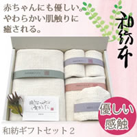 和紡布のギフト詰合せ。やさしい肌ざわりの贈り物です。和紡 ギフトセット2価格: 3,150円レビュー評価: 0.0 レビュー数:0 肌触りの柔らかさと吸水性で定評のある、昔からの製法で作った和紡布シリーズ。ご出産祝やご新居のプレゼントにピッタリな、ギフトセットをご用意しました。サイズふきんM:30×30cm和紡化粧おとし:20×20cm和紡健康タオル:30×95cm和紡ミニミトン:11×14cm重量個装重量:290g素材・材質綿100%(手紡ぎ糸使用、オーガニックコットン)セット内容ふきんM(生成)×1枚、和紡化粧おとし(生成)×1組、和紡健康タオル(生成)×1点、和紡ミニミトン×1点製造国中国 |